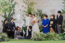 大好きなお花に囲まれた一枚!ブーケに向かって微笑むお二人をご家族様が見守りながらの撮影でした