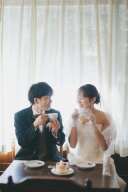 こちらもフラワーウォール背景で撮らせて頂きました。男性もお花、よく似合ってます^^