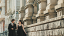 ロマンチックなカットもこの機会にぜひ。お二人の姿、珍しい黄金の紅葉の背景で絵のようなワンシーンに。