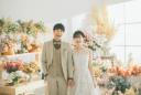 夕焼けをバックにお二人で歩いている一幕を! ドライフラワーをワンポイントになり素敵ですね!