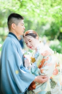 5月のGW桜が早かった分、新緑も早くキラキラした綺麗な緑と白無垢ショット