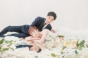 旦那さんのジャケットをお嫁さんにかけてあげて。ベスト姿も新鮮ですね。ぜひ撮影いただきたいカットです♡
