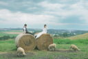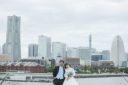 みなとみらいの夕景を背景に。空がとっても綺麗ですね。ロマンチックな一枚です。