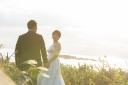 マジックアワーの時間を利用して柔らかな光を。新婦様の肌の透明感が増します。