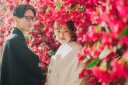 まずはフラワーウォール撮影です。フラワーウォールの前にはドライフラワーが。花々に囲まれて撮影が叶います