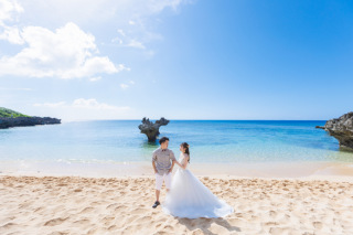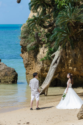 エメラルドグリーンのビーチ、緑豊かな自然、チャペル。どこを切り取っても絵になるロケーションで、おふたりの「やりたい」を叶える沖縄フォトウエディング