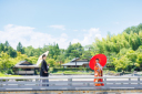 緑豊かな橋の上で撮影色鮮やかな色打掛と相性ピッタリ!お二人をより際立たせてくれます♪