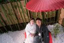 金の扇子を持ってポーズ。同じ場所でも違う雰囲気になりますね!