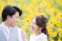 シンプルなグレー背景でお二人の笑顔が引き立ちますね!