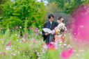 お天気が良い中、コスモス畑で自然なお二人のショットをたくさん残しました