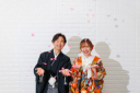 シンプルな背景では様々な撮影方法ができます!お写真のようなお二人の表情をメインに撮影し、柔らかい雰囲気に演出