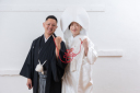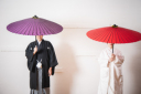 白無垢に漆喰、赤の番傘のコントラストがとても綺麗でした!