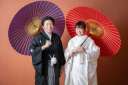 番傘を持ってしっとり撮影しました!お二人まだ緊張しているご様子です!