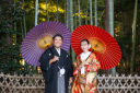 偕楽園のもみじを入れてシルエットショットです!番傘に写る二人のシルエットも素敵でした!