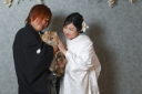 後撮りのお二人!結婚式で使用したブーケをブリザードフラワーのブーケに作り替えてお持ち込みいただきました!