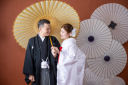 白の番傘を使用して!お二人とも笑顔がバッチリです!