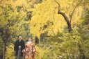 美しく黄色く色づいたイチョウ並木を背景に撮影!お見つめ合いカットはおふたりの仲の良さが伝わります♪