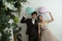 お花で片目隠し!当店にも撮影小物多数ご準備ございます!