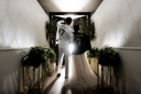薄ピンクと白色が混じる壁紙に真っ白な和装が映えて素敵です♡