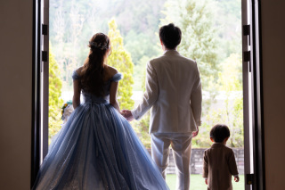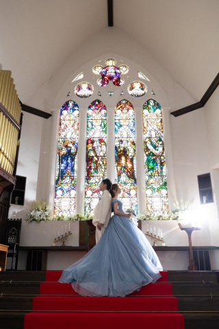 ステンドグラスの式場を使った写真は自然光を使ったりしてとても綺麗でした。 子供と3人で撮れたのも嬉しかったです。