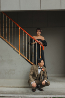 カジュアルでお二人らしさを出した雰囲気のある一枚。特殊な撮影方法でドレスとタキシードがより引き立ちます♪