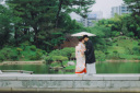 和傘を手にした二人。和装が引き立つ素敵な一瞬を捉えました。