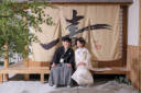 宮島島内にある町家通りで仲睦まじく歩く姿のお二人です!