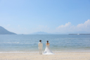 お互いに顔を寄せ合い、幸せそうに微笑むお二人。信頼と愛情に満ちたこの瞬間が、これからもずっと続いていくことを予感させる、温かい一枚です。