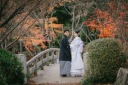 お次は新婦様のソロショットです!赤のお着物と紅葉がマッチしていてとても美しいですね。