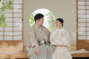 三景園のお茶室から撮影スタート!かっちりとした立ち姿がお茶室の雰囲気ととても合いますね。