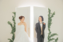 背景をレンガに変えることでおふたりの衣装がより映えていい感じでした。