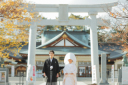 高く高く舞った彩どりの舞がおふたりを祝福する中でのおふたりのニコッとされた表情はとても微笑ましいですね。