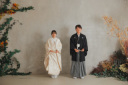 新郎さんの肩に手を置き、新婦さんからお迎え。おふたり揃ったとこで撮影スタートです!