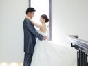 窓際での1ショット。おふたりの手には、「鳥かご風リングピロー❦」中央にクッションを入れて手作りされたそう!素敵ですね