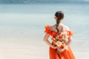 海とグリーンをバックにクールな1枚☆ブーケをみつめて、空をみつめて・・