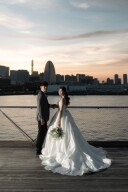 優しくエスコートする頼もしい新郎さまに、新婦さまも優しく微笑んでいます。