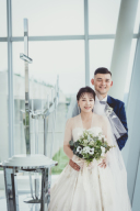 スリーピースタキシードがスタイリッシュなLauro(ラウロ)と、小花が施されたフェミニンなLimone(リモーネ)をご着用いただきました。