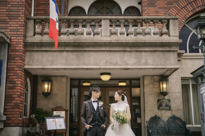 横浜「馬車道十番館」は喫茶室とバーを併設したフレンチレストラン。明治の西洋建築を再現したレトロな洋館でのウエディングフォト。撮影後の新郎新婦のランチ付き。ご家族でのお食事会もできます。 ※移動タクシー代はお客様負担 ※月・火・木・金限定