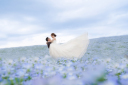 見つめ合いショット!素敵なカラードレスでも撮影できます!