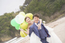 実は菜の花畑から河津桜の順番の撮影でした。菜の花畑の近くにある赤い橋で撮影。「エモい」のお言葉いただきました!