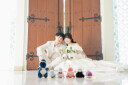 チャペル扉前での後ろ姿ショット。長い時を重ねた絆を感じます。