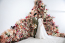 可愛らしい花壁を背景に、ぎゅっとハグショット♪嬉しそうなご新婦様が可愛いですね><