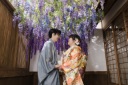 藤の花の下でにっこり笑顔なお二人!笑顔がとっても素敵です!!