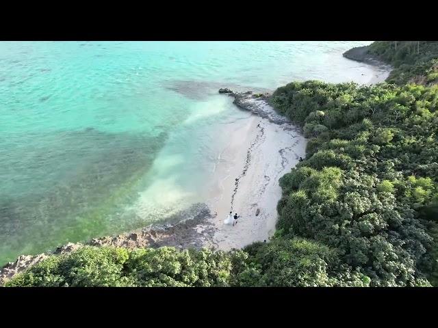 Island Journeyでも人気で撮影ご希望の方が多いドローン撮影♪青く澄んだ海のスケールを感じることができます!