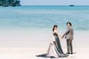 ウェディングドレスにご新郎様のブルーのタキシードが差し色でとても合いますね♪