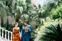 チャペル撮影前に、ブーゲンビリアを背景にお撮りします。ブーゲンビリアの花言葉は「あなたは魅力に満ちている」とウエディングらしいロマンティックなお花♡