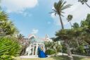 大聖堂の扉が開くとそこは光あふれるガラスの空間が広がります。青い空と複雑なブルーが彩る海、ガーデンに囲まれた祭壇からの眺めは一生忘れられない光景です。
