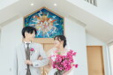 真っ白に包まれた透明感あふれる1枚。お二人が見つめ合い笑顔になる瞬間をお撮りしました♪