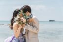 最後はビーチ撮影!おでこをくっつけて、ロマンチックにおしゃれな1枚に仕上がりました°˖✧