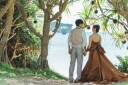 透明感あふれる沖縄の海と壮大な万座毛のコラボレーション!おふたり仲良く手を繋いでのお散歩ショット。手を繋いで歩く、その何気ないことが一番の幸せかもしれませんね。